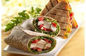 Нарезать из пергамента квадраты для каждой лепешки. Тортильи смазать сальсой, разложить куриное филе, измельченный перец и оливки. Туго скатать рулеты, обернуть пергаментом. Роллы хранятся в холодильнике около 2 дней, при необходимости разогреть в микроволновой печи.