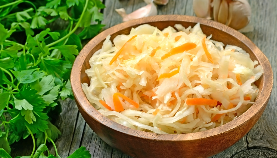 Квашеная капуста. Источник пробиотиков, аскорбиновой кислоты и витаминов группы B, способствующих увеличению физической и умственной активности. Салат из квашеной капусты с оливковым маслом – приятный и бодрящий послеобеденный перекус.