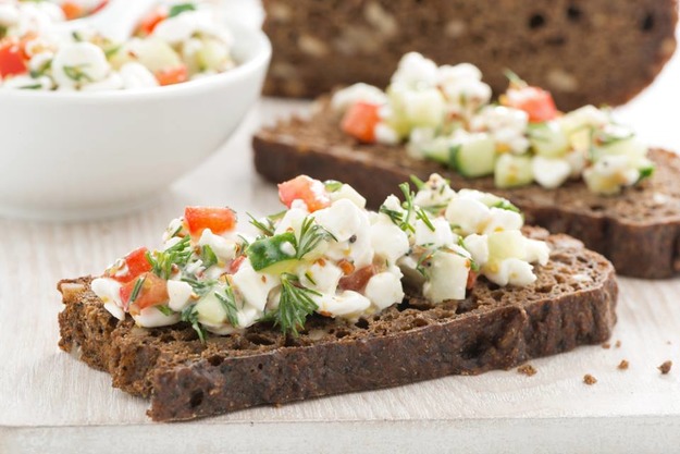 Петрушку и укроп промываем и измельчаем. Мелко нарезаем соленые огурцы. Зубчики чеснока разминаем и соединяем в миске с творогом. Затем добавляем зелень и огурцы, еще раз все хорошенько перемешиваем. Если паштет будет суховат, добавляем оливковое масло по вкусу. Готовим тосты из цельнозернового или черного хлеба и подаем на них паштет, украсив зеленью.