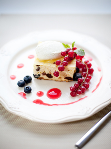 Замочить изюм в теплой воде на 5−10 минут. Творог и сахар перемешать до однородной массы, добавить желтки, манную крупу и муку, а потом ванильный экстракт, сметану и изюм. Разогреть духовку до 180 градусов. Выстелить форму пергаментом, немного смазать сливочным маслом и присыпать мукой. Вылить тесто для запеканки в форму и выпекать 25 минут до готовности.