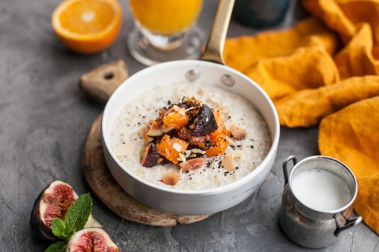 Овсяная каша на молоке с хурмой, тыквой и миндалем