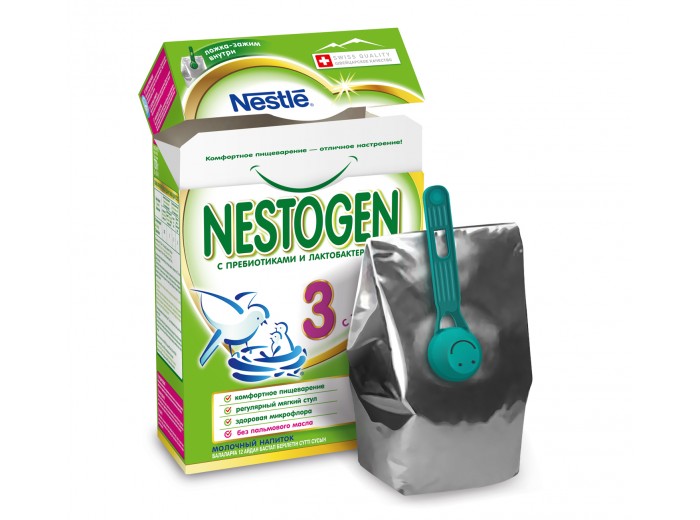 - Nestogen с пребиотиками и лактобактериями 350 г смесь молочная 3, с 12 мес.