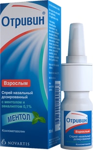 - Назальный спрей "Отривин 0,1%" с ментолом и эвкалиптом, 10 мл