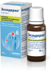 Раствор Экзодерил — это лекарственное средство от грибка ногтей, а значит, не только борется с внешними проявлениями грибка ногтя (изменение цвета ногтя, утолщение, истончение, отслоение ногтя и др.), но и убивает непосредственно причину внешних изменений — грибок.