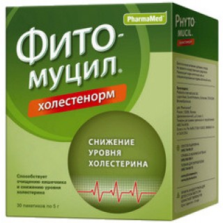 - Фитомуцил Холестенорм 5 г, №30 - способствует очищению кишечника и снижению уровня холестерина.