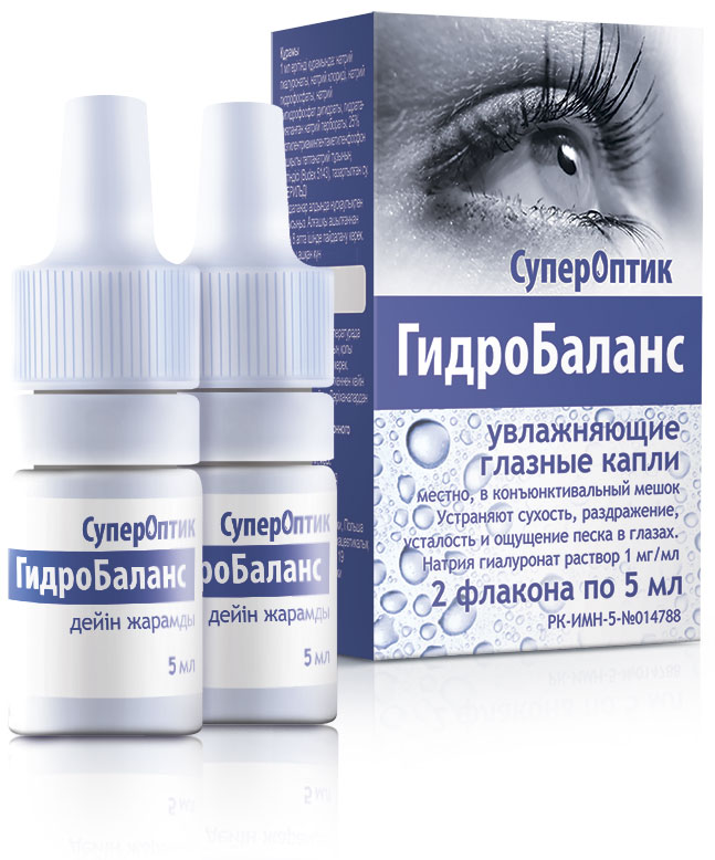 СуперОптик ГидроБаланс - увлажняющие глазные капли обеспечивают эффективное и длительное увлажнение глаз. Устраняют сухость, раздражение, усталость и ощущение песка в глазах.