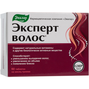 Таблетки Эксперт волос - уменьшают выпадение и стимулируют рост новых волос, улучшают питание волосяных луковиц, возвращая волосам жизненную силу и красоту, улучшают состояние кожи головы (без перхоти, зуда, раздражений), стимулируют образование коллагена в дерме, возвращая волосам блеск и сияние.