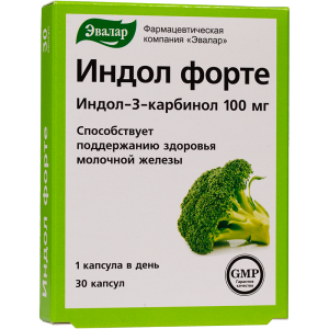 Индол Форте Эвалар состоит из индол-3-карбинола – вещества, содержащегося в растениях семейства крестоцветных, которое с успехом применяется для сохранения здоровья женской репродуктивной системы (молочная железа, эндометрий, миометрий, шейка матки, яичники).