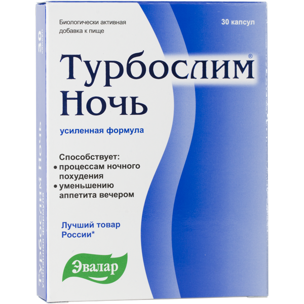 Турбослим ночь усиленная формула — биокомплекс ночного действия, направлен на снижение аппетита вечером, ускорение метаболических процессов во время сна, стимуляцию утренних процессов очищения. «Турбослим ночь усиленная формула» также блокирует усвоение жиров и в неизменном виде выводит их из организма.