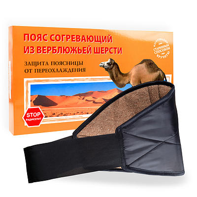 Верблюжья шерсть обладает хорошими согревающими свойствами, долго удерживает тепло. Пояс с такой шерстью подойдет людям с чувствительной кожей. Лечебный эффект обеспечивается за счет тепла и плотной фиксации пояса на пояснично-крестцовом отделе позвоночника. Пояс с верблюжьей шерстью, как и другие пояса с натуральной составляющей из шерсти животных, обладает способностью нейтрализации на поверхности кожи отрицательных электрических зарядов, за счет чего улучшается циркуляция лимфы. Подходит для длительного ношения, так как хорошо пропускает воздух, «дышит». Такой пояс по весу легче пояса из овечьей шерсти.